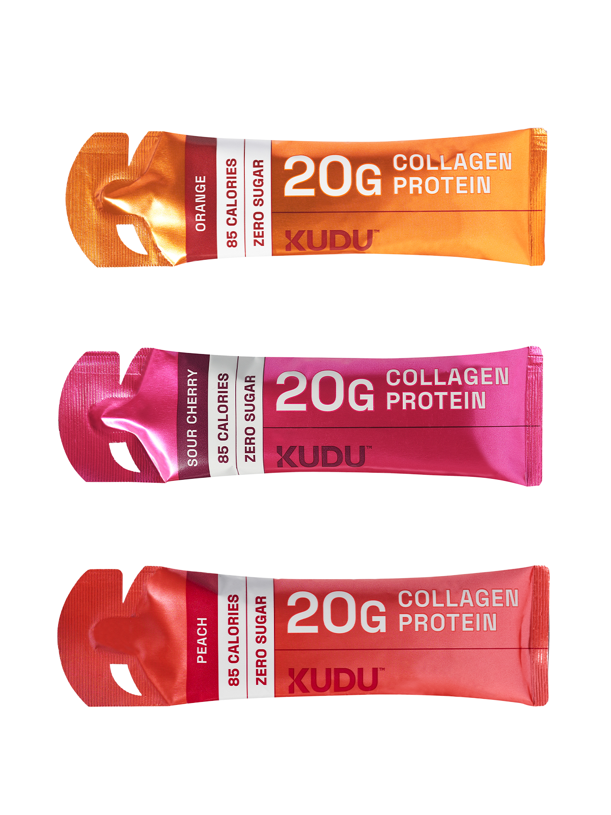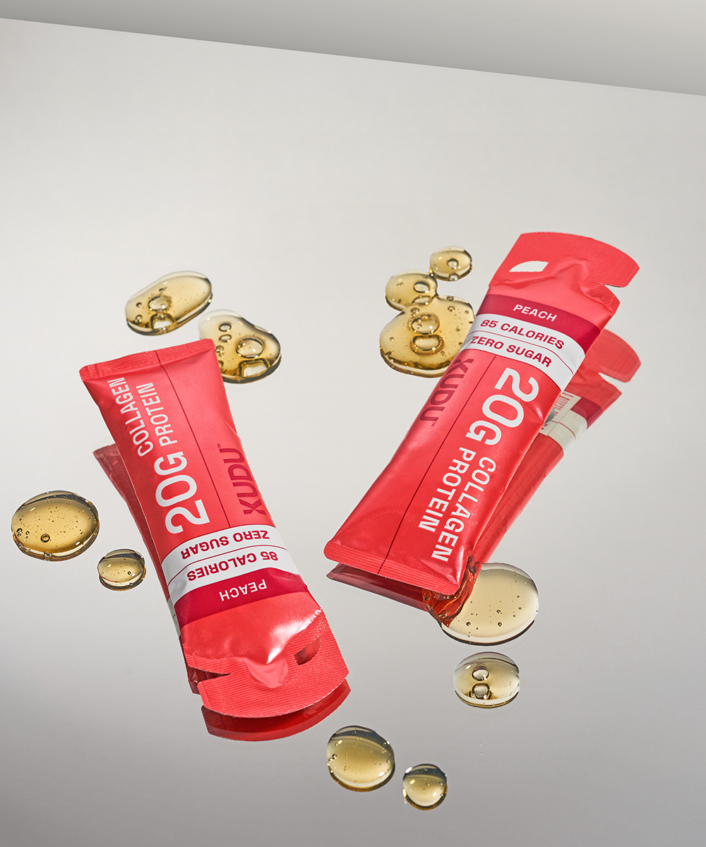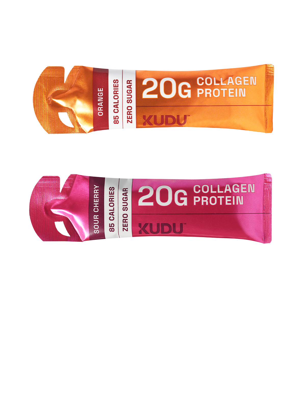 KUDU sachets contain 20g collagen protein per serving. That’s the optimum dose to reap the rewards for your joints, bone health and muscle mass and strength.